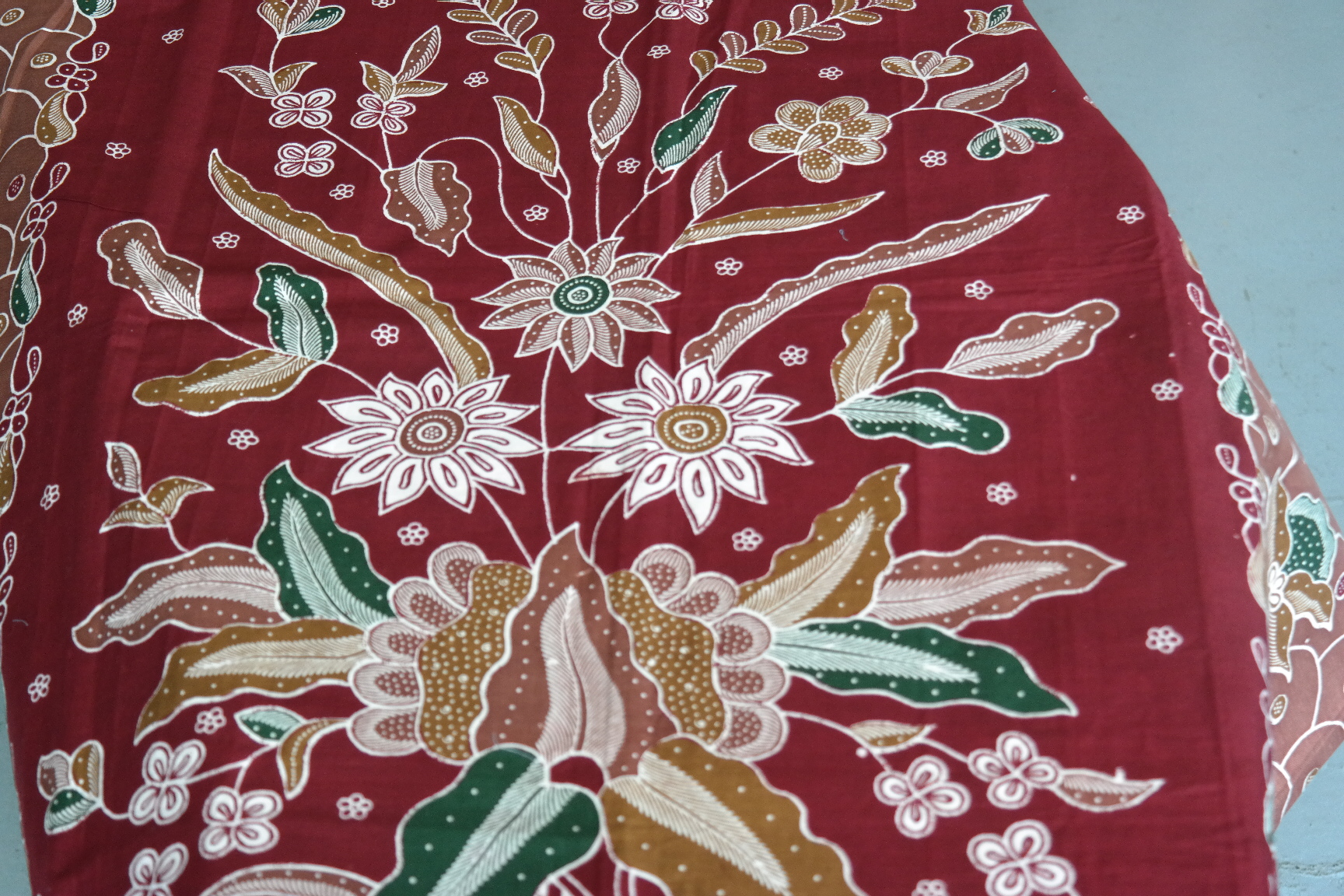 Every batik fabric is an delicate piece of art. The fine prints as well as the details of every step can be observed on the fabric itself.